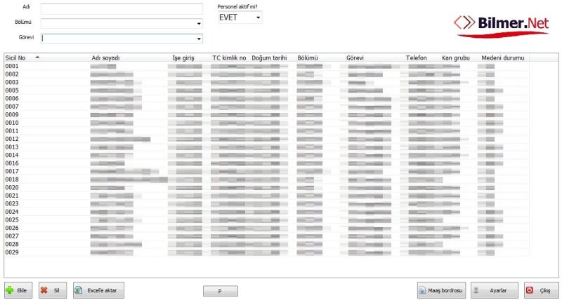 Excel’e Aktarım: Personel listesini tek tuşla Excel formatında dışa aktarabilirsiniz.