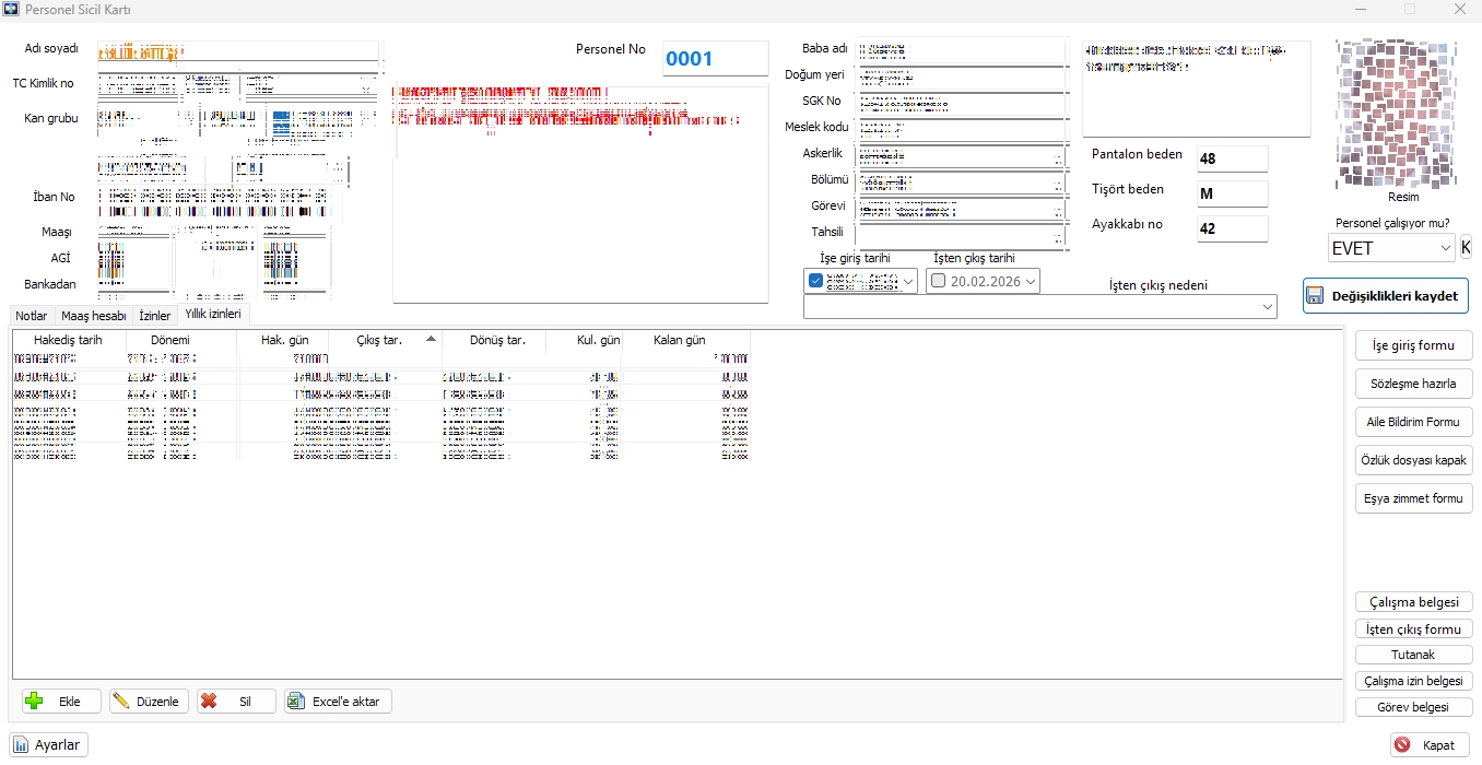 Excel’e Aktarım: Personel listesini tek tuşla Excel formatında dışa aktarabilirsiniz.